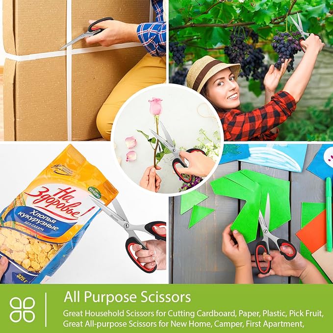 - - Heavy-Duty All-Purpose Scissors: The premium quality scissors are perfect for cutting fabrics, leather, boxes, packages and other materials with ease. Great All-purpose scissors for household, new home, camper, first apartment, and outdoor general use.