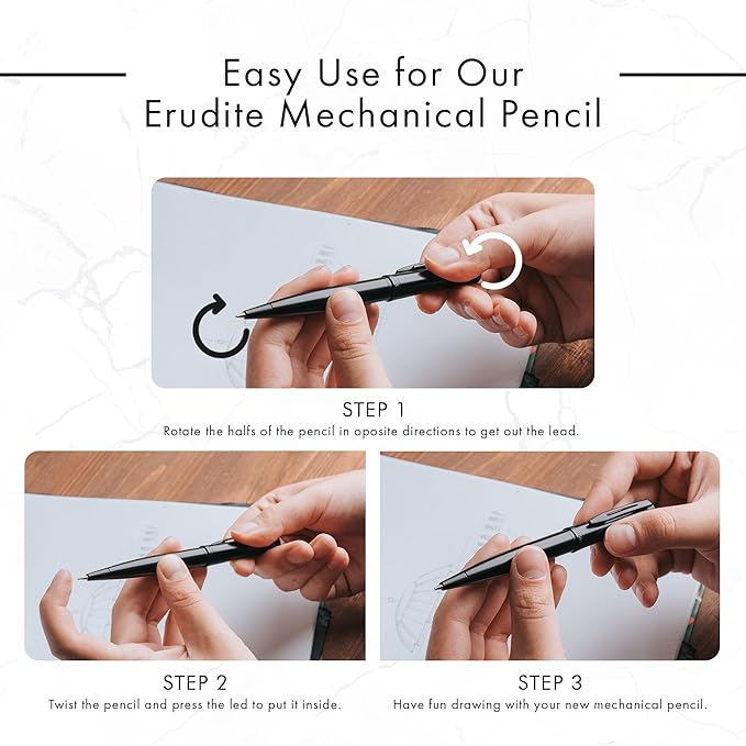 - ★ HIGH-END PREMIUM PENCIL - The mechanical pencil’s lead requires no sharpening, allowing you to work more efficiently. With a smooth one-push operation, it’s perfect for drafting, technical writing, drawing, or sketching. Ideal for artists, architects, engineers, professionals, teachers, and students alike.