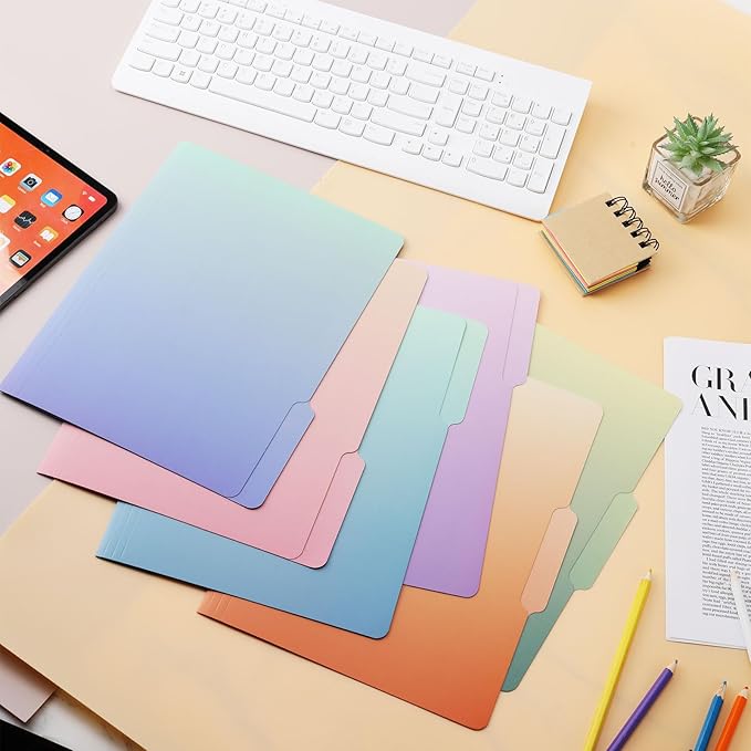 - 【Package Includes】You will get 6 decorative file folders letter size,in 6 cute Colored gradient styles, each style is unique. Make storing your file folders full of fun, and the files are arranged more orderly and more personally.