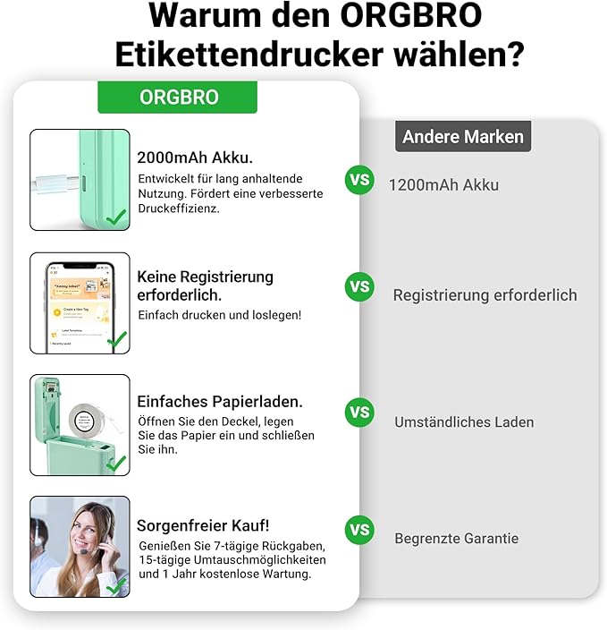- Label Durability: ORGBRO label maker comes with a roll of 12 x 40 mm white pre-cut labels; ORGBRO labels waterproof, oil-resistant, and abrasion-resistant. No residue remains after removal; Supports continuous label paper (15 mm width) and fixed-length labels (12 x 40 mm); We recommend using ORGBRO thermal label paper for optimal print quality
