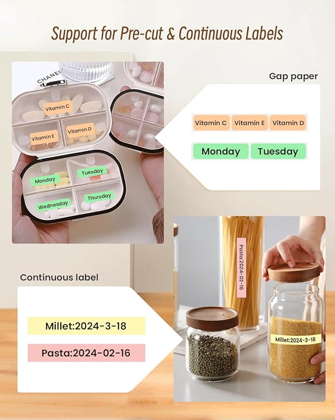 - Portable Machine-Mini Label Maker: The portable label maker is smaller and lighter, It is convenient to take it in your bag and bring it to your home and office. Our Bluetooth label maker only needs to be loaded with labels, and connected to Bluetooth, Then you can print your labels anytime, anywhere.