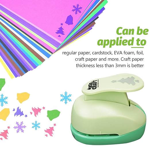 - Scrapbook Punches Quantity --- Comes with 3 pieces craft paper punchers in 6 different styles and 30 pieces colorful craft paper, 3 shapes including christmas, snowflakes and bells shape, comfortable to use and easily get a clear shape from card-stock, a great craft supplies for kids.