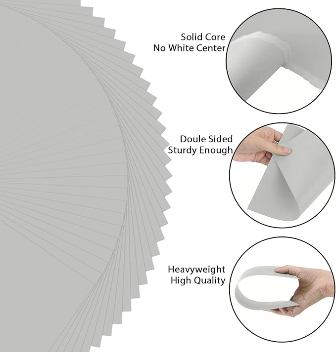 OcePor 100 Sheets Grey Cardstock Paper, Colored Printer Paper 8.5 x 11, Card Stock Thick Construction for Craft,Scrapbook,Office Printing, Invitations, Certificates,92 lb/250gsm
