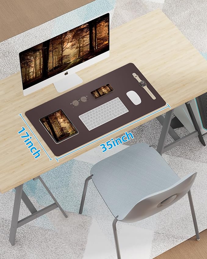 - MULTIFUNCTIONAL DESK PAD:35 x 17 Inch Size is large enough to accommodate your laptop, mouse and keyboard. Its comfortable and smooth surface can be work as a mouse pad,desk mat,desk blotters and writing pad.