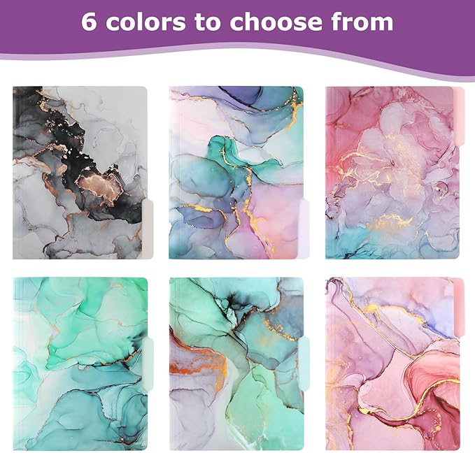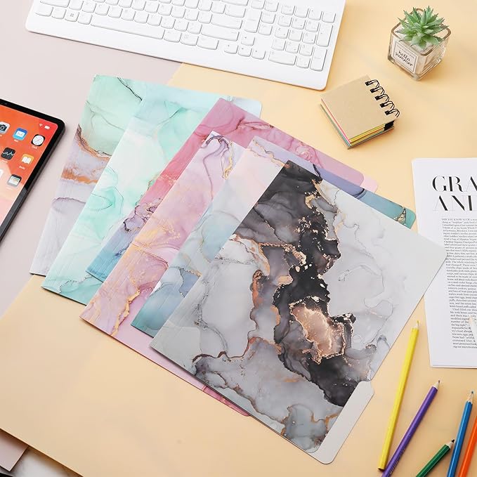 Ddaowanx Decorative File Folders Cute Colored File Folder,Letter Size File Folders for Documents,1/3-Cut Tabs,9 x 11.5 Inches,for Office,School,Home (12, Marble)