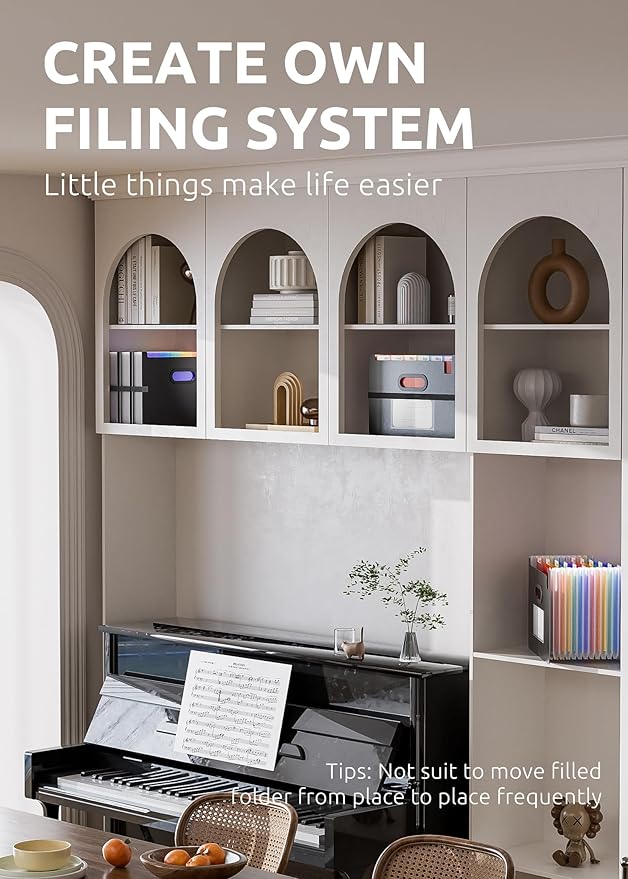 - EASY ACCESS - No cover and no hamper, open top and Monthly colorful Tabs, coding files in alphabetical order