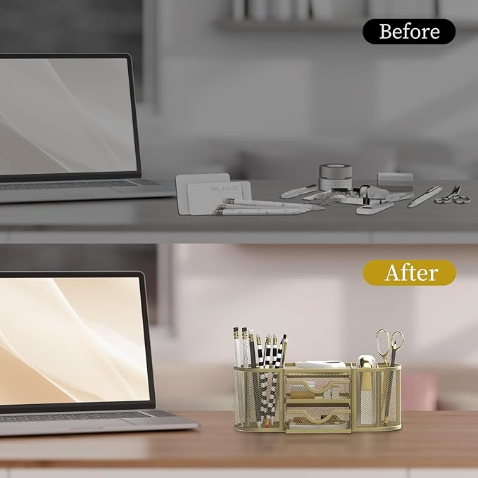 - [Ideal Choice] Our pencil holder for the desk have more drawers and pen holders to store, bringing customers a better experience .
