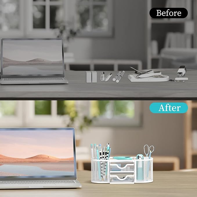 - [Ideal Choice] Our pencil holder for the desk have more drawers and pen holders to store, bringing customers a better experience .