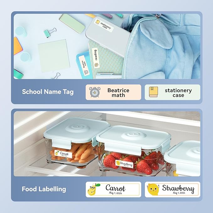 - 【Wide Compatibility】Ideal for home,kitchen, office, school, grocery and small business use, including food, kids stuffs, cosmetics, cables, and price tags. No ink or toner needed. Built-in 1500mAh battery ensures long-lasting performance. NIIMBOT D110 label maker is a nice choice for family and friends for valentines day, birthday, anniversary, housewarming, wedding, back to school, Thanksgiving and Christmas.