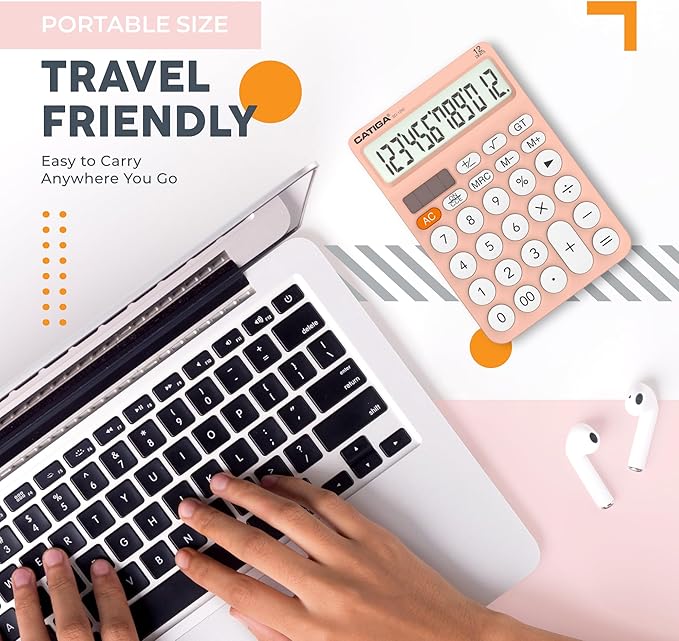 - 【Essential Cute Calculator for School and Study】The CATIGA 12-digit desk calculator is a cute calculator designed for students and daily users. Its lightweight, colorful build makes math tasks fun and easy. Perfect as a desktop calculator for school, home, or office, it delivers reliable performance with vibrant style.