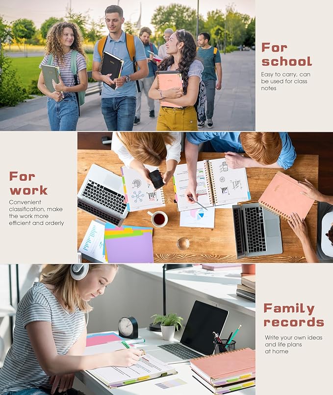 - 【Hardcover Notebooks for Work School】This spiral 5 subject notebooks is an excellent choice for students, professionals, or anyone who like to write things down and needs to keep them organized. A stylish look with gold color stamp font, binding brighten up your dreary desk, also a wonderful gift to work organization, back to school or family records.