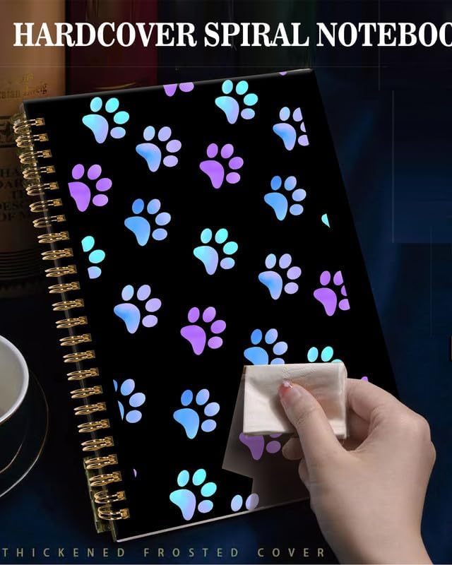 Spiral Journal Notebook,A5 Hardcover Lined Journals for Women Girl 6 x 8.3 in,120 Pages Thick Paper,Cute College Ruled Writing Notebook for Gifts Office Work School(Purple Dog Paw)