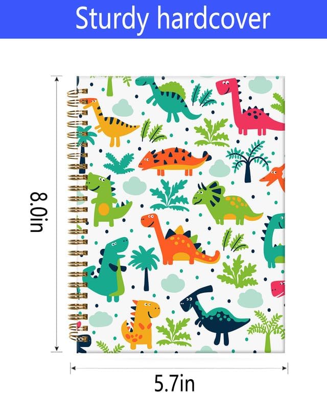 Spiral Journal Notebook,A5 Hardcover Lined Journals for Women Girl 6 x 8.3 in,120 Pages Thick Paper,Cute College Ruled Writing Notebook for Gifts Office Work School(Cute Dinosaurs)
