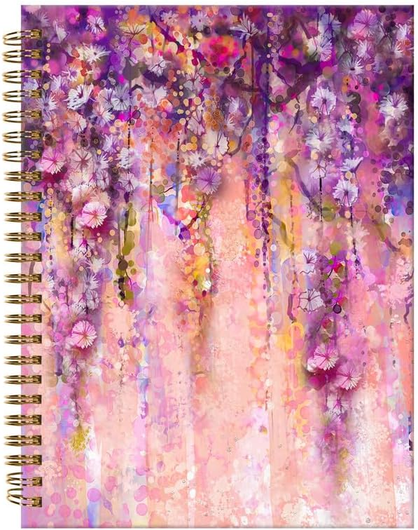 Spiral Journal Notebook,A5 Hardcover Lined Journals for Women Girl 6 x 8.3 in,120 Pages Thick Paper,Cute College Ruled Writing Notebook for Gifts Office Work School(Spring Purple Flower)