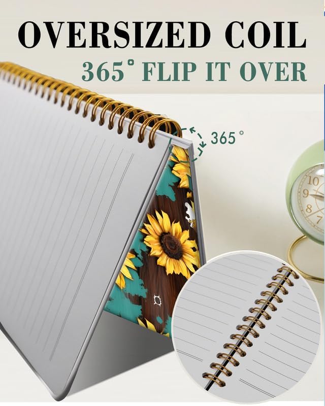 Spiral Journal Notebook,A5 Hardcover Lined Journals for Women Girl 6 x 8.3 in,120 Pages Thick Paper,Cute College Ruled Writing Notebook for Gifts Office Work School(Sunflower Cow Wood Grain)