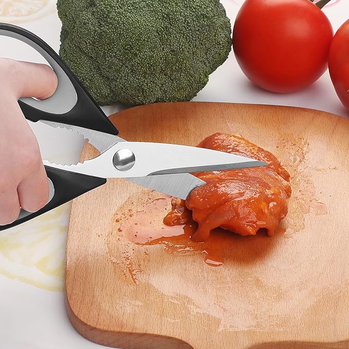 - Multifunctional scissors can cut chicken, poultry, fish, meat, vegetables, herbs, seafood, food packaging.