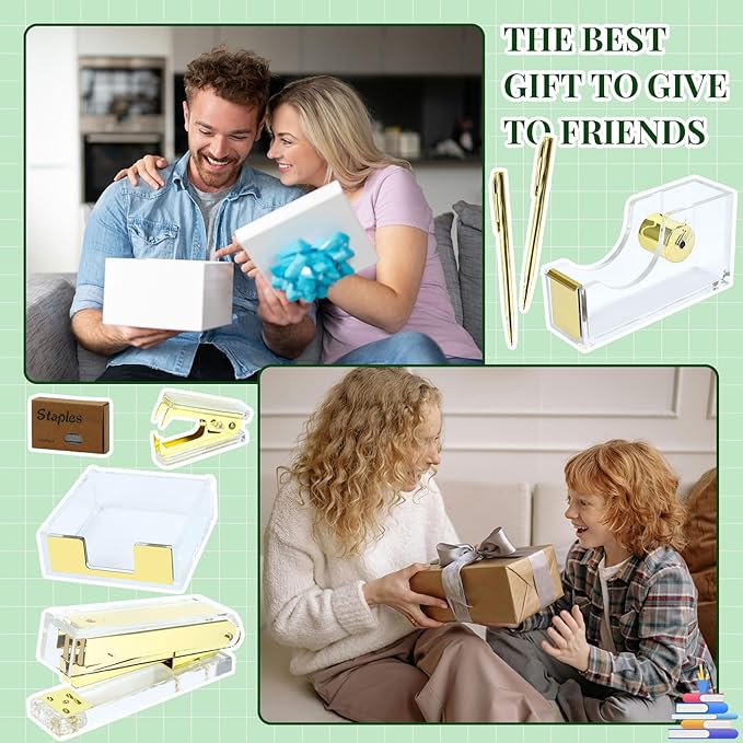 - Stable & Scratch-Free Design – Each key piece (stapler, tape dispenser, note holder) features 4 anti-slip rubber pads on the bottom – prevents sliding during use, protects desk surfaces from scratches, and ensures quiet, steady performance.