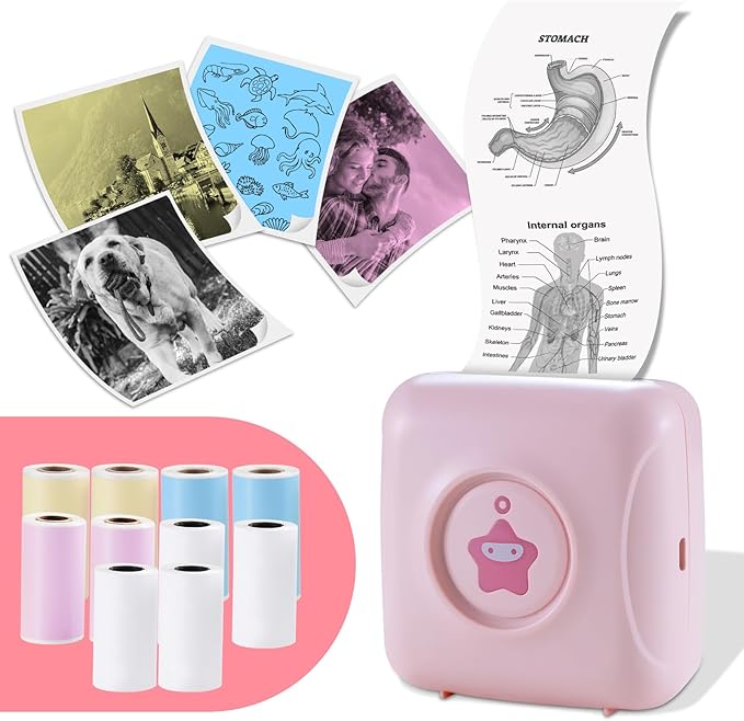 - Pocket-sized Portable Printer: Combinations of compact size and bluetooth connectivity, this portable thermal printer means that they're impressively convenient little devices that you can take the mini printer to anywhere and anytime. It's slim enough to slip into a pocket,weighs only 188g.
