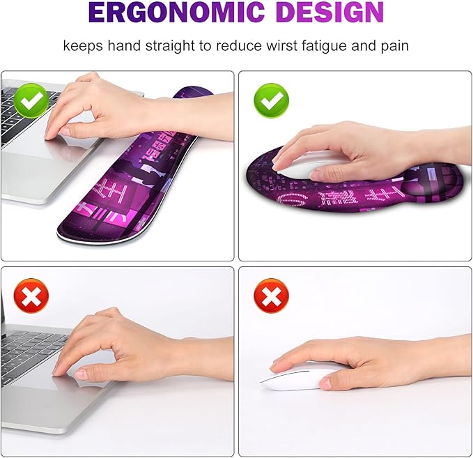 - 【Ergonomic Design Mouse Pad Combo】 This large desk mat with wrist rest and ergonomic mouse pad combo designed with memory foam and soft smooth material to the pads, lightweight comfortable and durable for your daily work life. The mousepad wrist support and keyboard wrist rest is contoured ergonomically to keep arms, wrists, and hands from getting sore while working and gaming for long periods of time, maximum reduce wrist stress and tiredness.