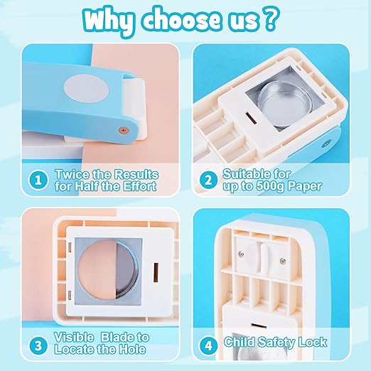 - Clean Cuts, Easy on Your Hands : Enjoy effortless crafting with our Craft Hole Punch. The expanded pressing area ensures even pressure, resulting in clean, precise cuts that are easy on your hands, even with repeated use
