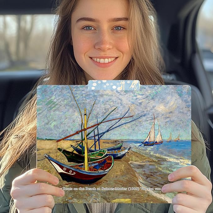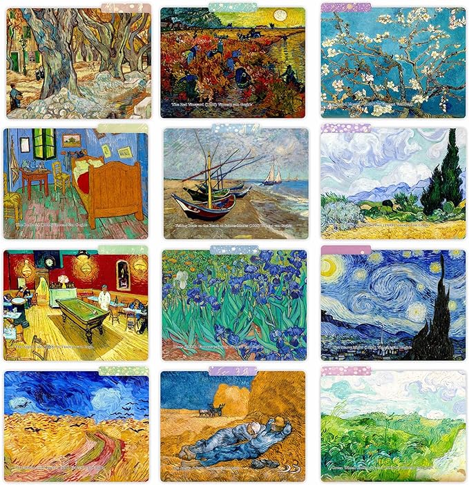 - PACK of 12 COUNTS: Decorative Unique Vincent Van Gogh Paintings File Folders with 1/3 Cut Tab in Assorted Positions.