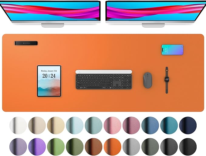 Aothia Leather Desk Pad Protector, Office Desk Mat, Large Mouse Pad, Non-Slip PU Leather Desk Blotter, Laptop Desk Pad, Waterproof Desk Writing Pad for Office and Home (48"x17", Hermes Orange)