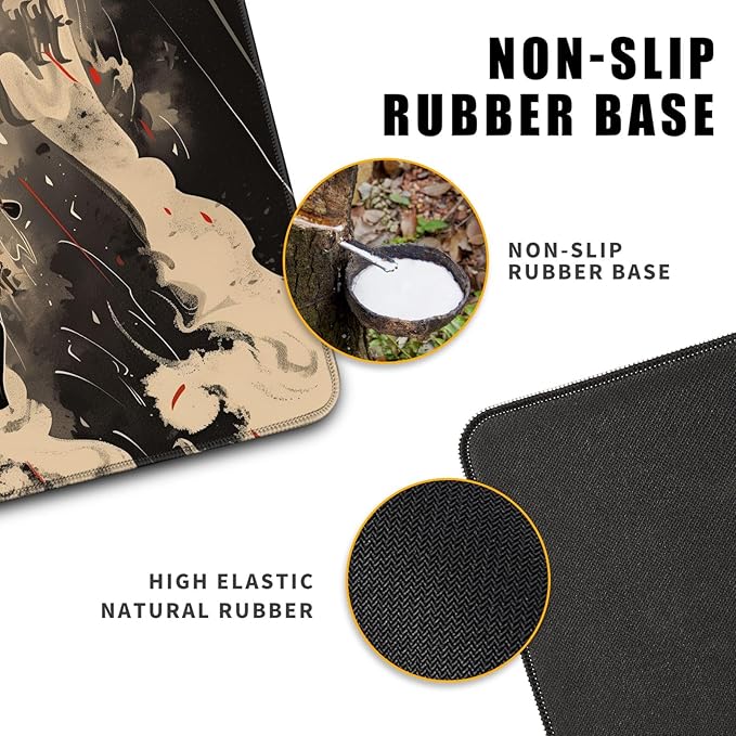 Huge Demon Large Mouse Pad Japanese Ukiyo-e Mousepad Samurai Desk Mat, Big Full Keyboard and Mouse Pad Cool Desk Pad for Keyboard Mouse with Stitched Edges Anti-Slip Funny Desk Pad, 31.5 X 11.8