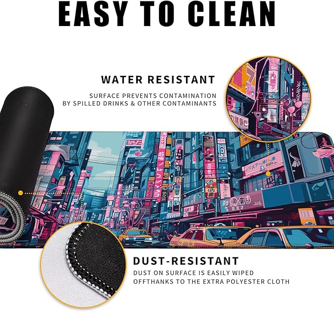 Japanese Mouse Pad Desk Pad 80s City Desk Decor Mat, Large Gaming Mouse Pad for Desk Computer Keyboard Laptop, Desk Decor Home Office Accessories (31.5x11.8 in)-with Stitched Eges Pad