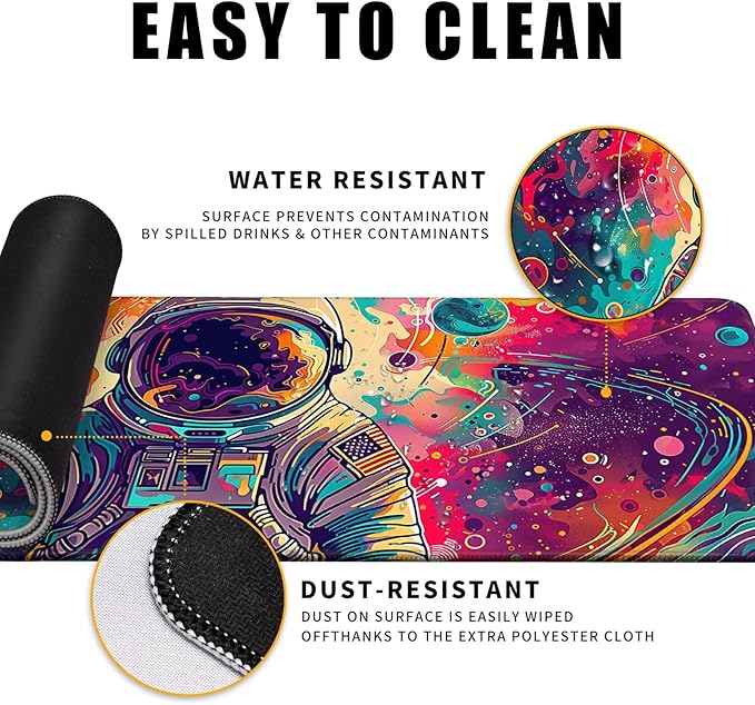 Desk Mat Colorful Space Desk Accessories Astronaut Extended Gaming Mouse Desk Pad Decorations for Office Keyboard Mousepad Mat31.5x11.8in, Stitched Edge Non-Slip Bottom Large Mouse Pad