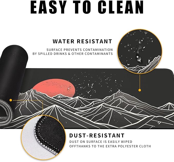 - Durable and Easy to Clean: When computer gaming Desk Pad gets dirty or liquid splashes on the coating surface, just need to wipe it with a piece of wet cloth, and job done. Adds style and functionality to your desk helping to create a comfortable and organized work space.