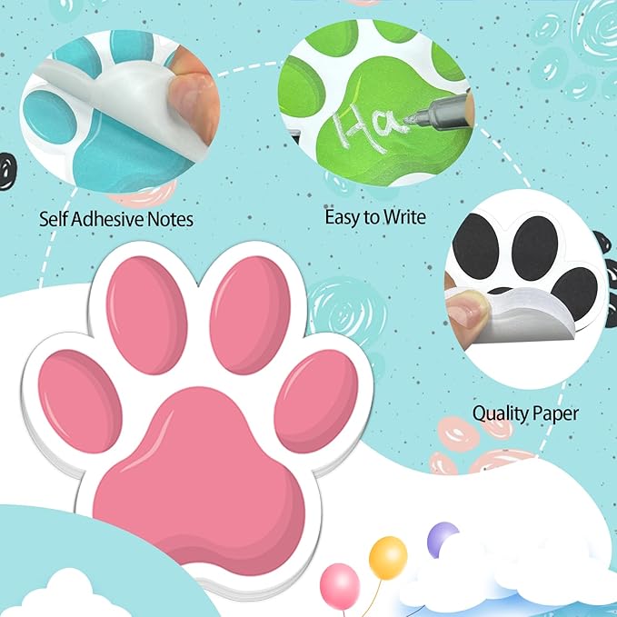 - Easy to Stick and Remove: Paw print note pads are made of quality paper and adhesive, smooth surface, smooth writing, can be re-sticked and will not leave adhesive marks, these paw shaped sticky notes can be firmly stuck on books, computers, desks, walls, refrigerators, etc.