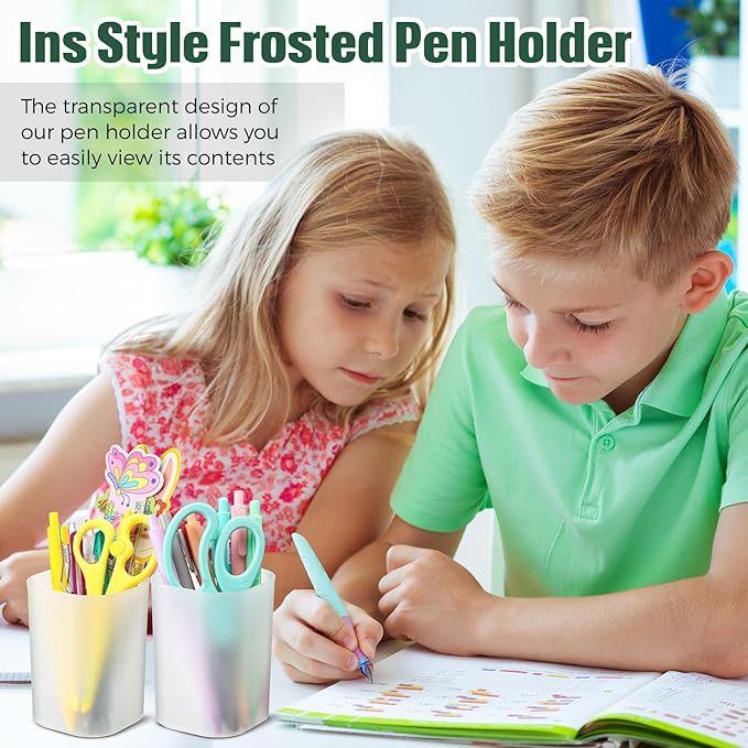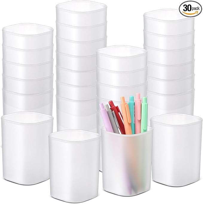 30 Pack Pen Holder Pen Cups for Desk Organizers and Storage Stationery Plastic Matte Pencil Holder Cups Ins Style Transparent for Office School Home Supplies