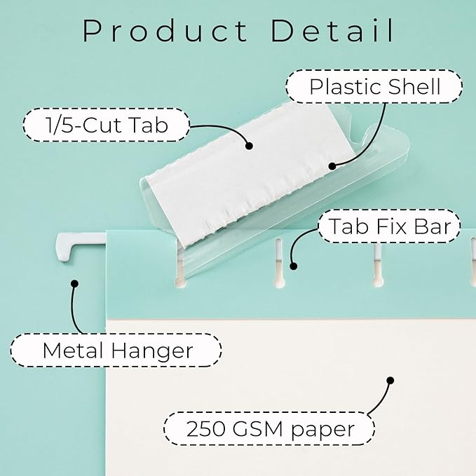 - Sorted Tabs - Each hanging folder features a 1/5-cut custom tab for hassle-free organizing and access to documents. Our pretty hanging folder can store bulky files, medical charts, or product manuals and keep files separate