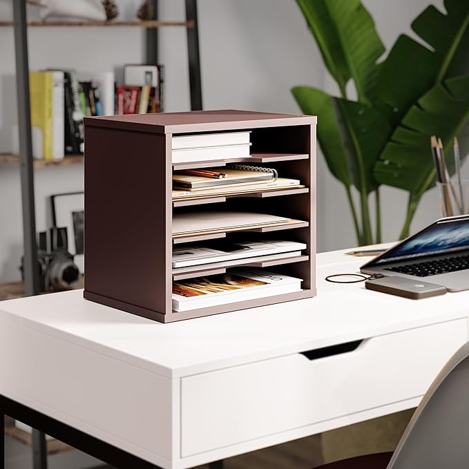 - ORGANIZER: This dark brown paper organizer features 5 storage spaces, so it has ample room for sorting mail and storing books, folders, magazines, craft papers, files, and more