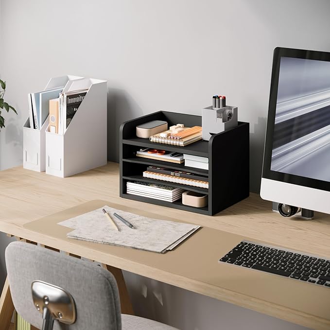 - DESKTOP ORGANIZER: Use this black paper tray organizer to declutter home office. Utilize its 4 trays to sort your mail, papers, folders, letters, documents, card stock and more