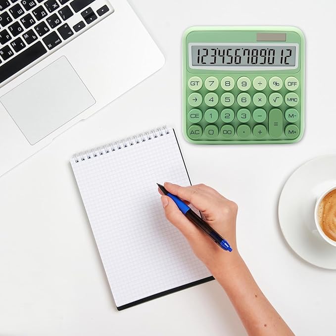 - Imitation Mechanical Keyboard Design - Our cute calculator make with large LCD display ,12-digit display.The big buttons imitating the knocking feel of a mechanical keyboard.Your calculation process will be faster and smoother with this calculator’s responsive buttons.