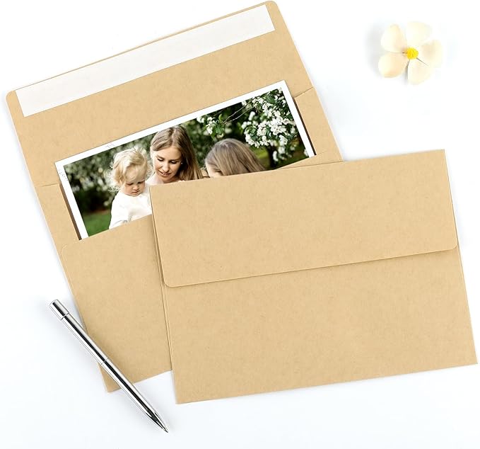 50 Pack 5x7 Envelopes, A7 Kraft Envelopes Self Seal, Printable Envelopes for Invitation, Baby Shower, Birthday Party, Wedding, Postcards, Mailing, Greeting Cards