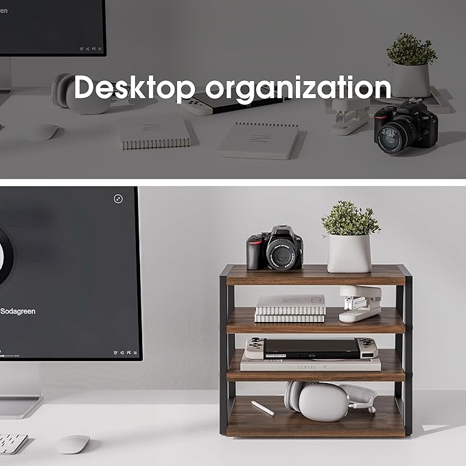 - 【Durable Construction】Measuring 14.6x10.5x12.1 inches, the desktop shelf is expertly crafted from high-quality 15mm thick wood board and robust iron frames. Each tier supports up to 33 pounds (15 kg), with a total capacity of 132 pounds (60 kg), ensuring lasting durability. The waterproof surface also makes cleaning effortless.