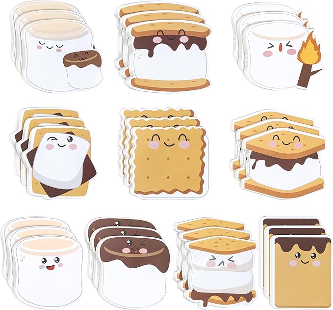 CJiangpo 30Pcs Marshmallow Sticky Notes Pads, 600 Sheets Cute Self Stick Notepad Memo Pads Funny Cartoon Page Marker Classroom Rewards Camping Themed Gift