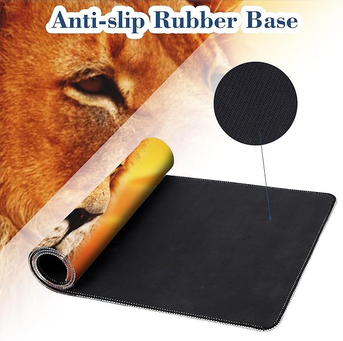 Lion at Sunset Mouse Pad Desk Mat XL Large Gaming Mousepad Extended Computer Keyboard Mat with Non-Slip Rubber Base and Stitched Edge 11.8 x 31.5 Inch for Gaming and Office Work