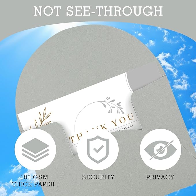 - Premium Quality Material: These 5x7 half-circle design envelopes are crafted from 180gsm heavy paper, ensuring durability and a high-quality feel. Ideal for a variety of uses, including wedding invitations, graduation announcements, and more.
