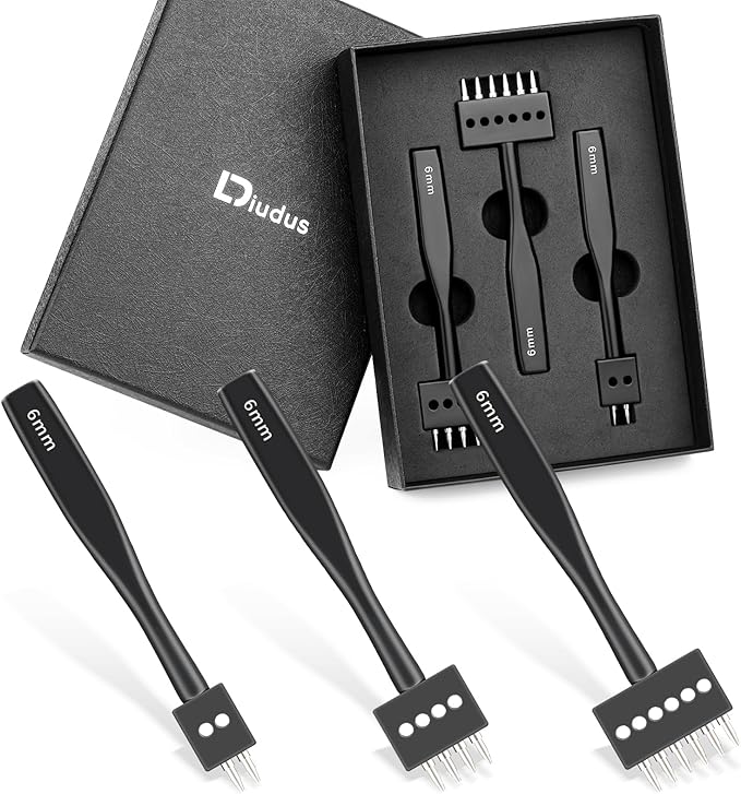 - LEATHER HOLE PUNCH SET: Come with three types of leather hole punch tool(6mm 2 Prong+6mm 4 Prong+6mm 6 Prong), you can choose the anyone according to your needs.