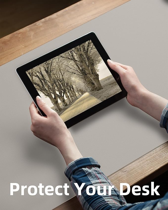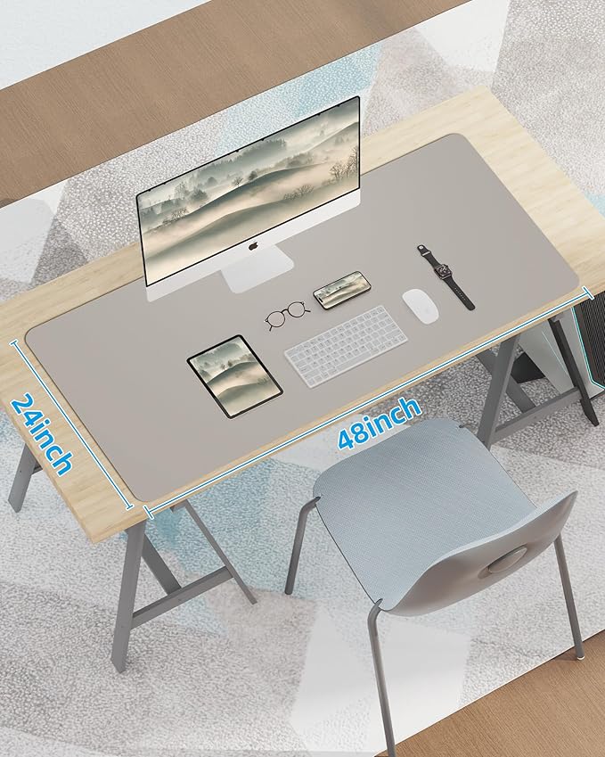 Leather Desk Pad Protector,Mouse Pad,Office Desk Mat, Non-Slip PU Leather Desk Blotter,Large Desk mat,Waterproof Keyboard mat for Office/Home/Decor (Light Grey,48" x 24")