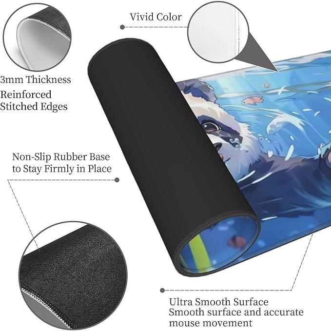 Cute Big Panda Gaming Mouse Mat Extended Large XL Mouse Pad Desk Mat Non-Slip Rubber Mice Pads Stitched Edges for Office and Home,31.5 X 11.8 X 0.12 Inches