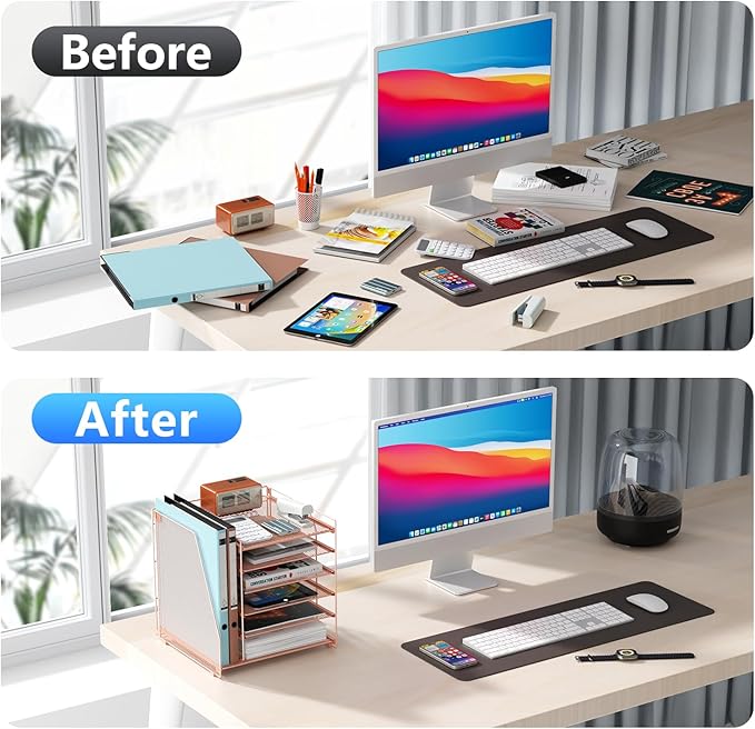 - 【Improve Efficiency】This desk organizer has 6 tray spaces and a magazine rack, allowing you to accommodate more files and office supplies. It helps you efficiently and quickly differentiate the contents of each compartment, making it easier to store and access items.