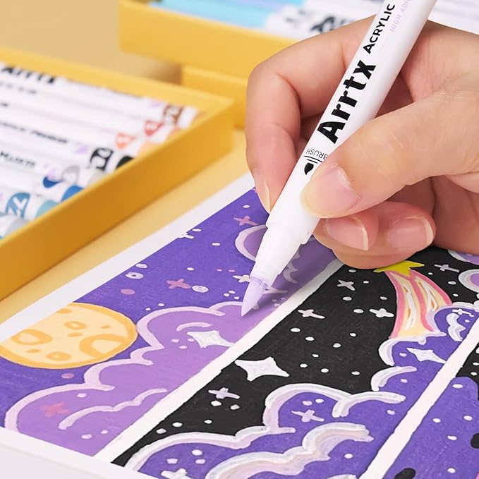 - Safe and Non-Toxic: Crafted with safety and durability in mind, our arrtx acrylic markers are filled with high-quality, non-toxic ink that’s safe for artists of all levels. Our products are rigorously tested and meet the stringent standards of ASTM D-4236 and EN-71, ensuring they are safe for use. The ink is waterproof once dry, guaranteeing that your designs remain vivid and intact over time. Resistant to fading, these markers ensure your artwork retains its vibrant and crisp appearance, even under challenging conditions.