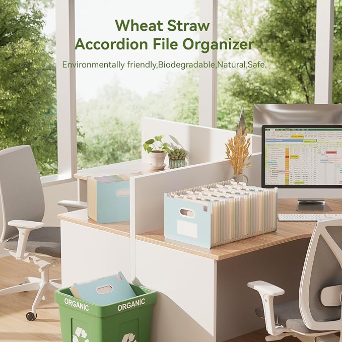 - 【Wheat Straw Material】Ecostash's Wheat Straw Open Top Accordion File Organizer are BPA-free, making them safer and healthier compared to plastic and paper file folders. Unlike plastic and paper hanging folders, wheat straw material is sourced from renewable agricultural waste, reducing dependence on petrochemical plastics and forest logging. This helps reduce greenhouse gas emissions, making a collective contribution to protecting the Earth's ecology.