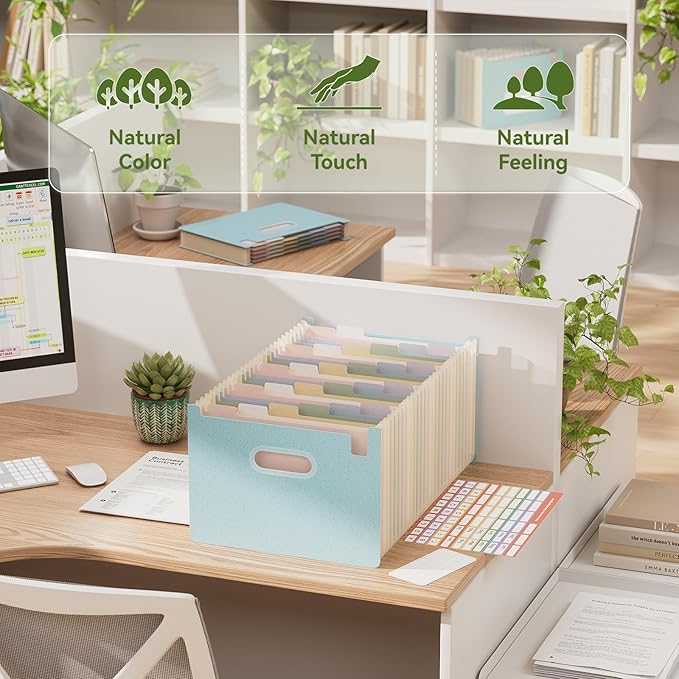 - 【Natural Color Selection】EcoStash wheat straw Expanding File Folder have a unique texture and appearance. Available in 4 colors: Mint Green, Sky Blue, Wheat Yellow, and Lavender Purple. Using different colors allows you to easily organize and distinguish documents. Its outstanding aesthetics allow you to experience the breath of nature in your daily use, adding a unique style to your document organization and protection.