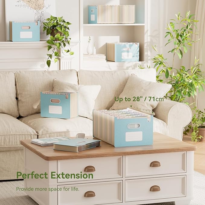 Accordion File Organizer, 26 Pockets Wheat Straw Expanding File Folders, Upright&Open Top, A-Z Bill Receipt Organizer, 100% BPA Free, Return to Nature, Healthy Living, Letter/A4 Size-Sky Blue