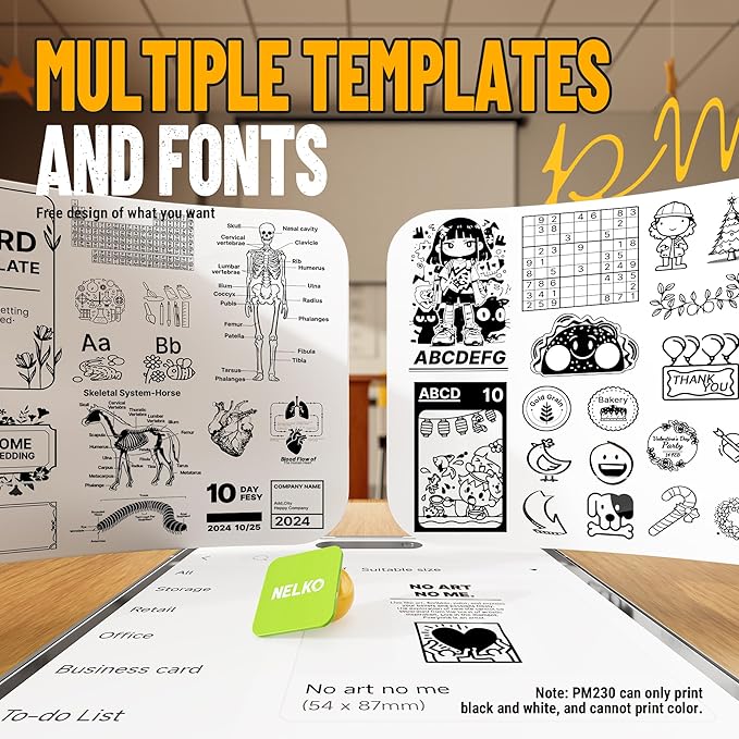 - Multifunctional Mini Printer: The sticker printer is widely used in office, school, and home. With PM230 mini sticker maker machine, you can print pictures, study notes, to-do lists, customize bookmarks, journals, greeting cards, company business, work plan, office assistant, memo. It is an office and study supply that can enhance your efficiency.This sticker label maker is ideal for back to school and holiday present to children, teacher, family and friends